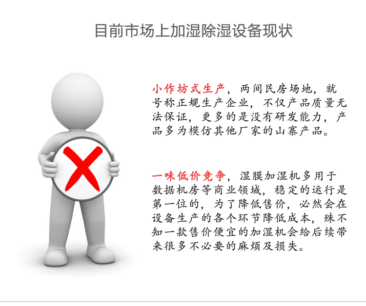 除湿加湿一体机专门针对湿度有精确要求的场所设计,是工业湿控的最佳方式,它集加湿、除湿于一体,真正实现了小型设备的多功能化。除湿加湿一体机具有等焓、高效、节能、洁净、安全、汽水饱和度高、除湿效果明显等特点,广泛应用于通信机房、交换机房、IDC机房、GMP洁净车间、SMT厂房、档案室、电子厂房、图书馆、博物馆、文物展厅、印刷车间、办公室、健身房、实验室、金库等诸多领域。