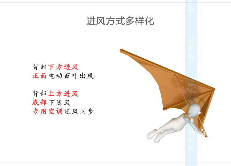背部上方进风,底布下送风和专用空调送风同步。