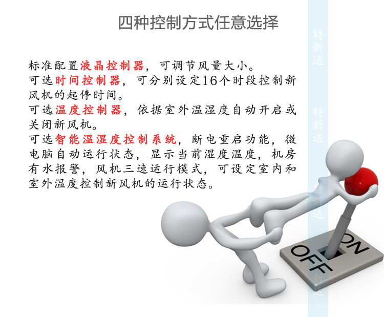 可选温度控制器,依据室外温湿度自动开启或关闭新风机。